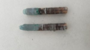 de afgebroken koperen bouten van de aardplaat