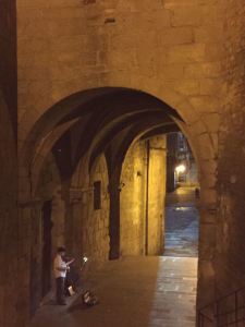 Maandagavond pak ik een rechtstreekse bus (er rijden er 2 per dag) naar het vliegveld in Santiago de Compostela. Daar landt Monique en we blijven daar in een hotel om de stad te bezoeken. S’ avonds wandelen we er rond. Er heerst een mystieke sfeer rond de kathedraal.