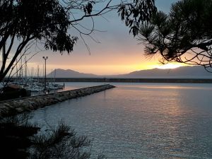 We vertrekken donderdag om 8 uur naar de Ria de Camarinas. We varen dan langs de Costa da Morte (de kust des doods). In het verleden zijn hier veel schepen vergaan. Er wordt gezegd dat de kustbewoners de navigatievuren expres doofden om zo de zeelui in verwarring te brengen en te kunnen profiteren van de aangespoelde buit. Voor zover ik de Spanjaarden nu ken, kan ik me dat absoluut niet voorstellen. De mensen zijn uiterst vriendelijk en correct. Zodra we de baai uitvaren voelen we de deining van de oceaan. We hebben weinig wind (en natuurlijk op kop) dus het grootzeil staat en de motor zorgt voor de snelheid. De koers gaat steeds meer zuidelijk en om een uur of 5 komen we aan in Camarinas. Een vriendelijk haventje met een mini havenkantoortje en een havenmeester die iets wegheeft van een inspecteur Columbo. De omgeving is prachtig. Groene heuvels die uit het water oprijzen. En bijna windstil. In het dorpje vinden we wat gezellige terrassen. ‘S-avonds wordt het wel koud, dus lang buiten zitten is er niet bij. Monique bereidt een heerlijke pasta maaltijd. (Als ik alleen ben komt er van koken niet veel, moet ik zeggen.) We ontmoeten er weer 2 vertrekkers die er met hun Trimaran voor anker liggen. Leuk om even bij te praten. We blijven er 2 nachten. Bert vertrekt al na 1 dag, hij gaat de warmte opzoeken van zuid Portugal.
