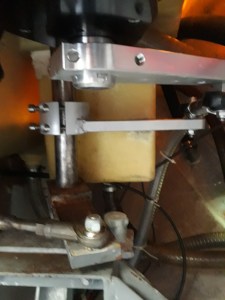 aan de bovenzijde de arm van de stuurautomaat en in het midden de arm op de roer as, die telkens loskomt…