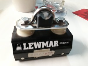 Toen de tuigers vlak voor mijn vertrek uit Nederland bezig waren met het vervangen van de verstaging, merkten ze op dat er een wieltje van de kar van de grootschootoverloop (Lewmar) kapot was. Knap dat ze dat gezien hebben, waarschijnlijk op zoek naar extra klussen. Ik heb aan dat bedrijf om een alternatief gevraagd. Een nieuwe traveller voor de huidige rail is niet meer te koop. Het betekent dat de oude rail eraf moet en een hele nieuwe overloop er weer op. Dat is nogal wat hak en breekwerk. Die oude zomaar losdraaien gaat niet, de moeren zitten ingelamineerd tussen dek en plafond van de achterkooi. Het zou betekenen dat het plafond open moet om de nieuwe bouten en moeren los tee draaien en weer te bevestigen. De overloop zelf is nog prima, dus ik heb deze klus uitgesteld tot later, ook omdat ik al op korte termijn zou vertrekken. Onderweg geen problemen gehad met de overloop. Nu is er hier in Palma een zaak waar gebruikte bootspullen te koop worden aangeboden. (Mercanautic). Ze hebben op internet een site, en daar staat warempel eenzelfde nieuwe kar te koop aangeboden voor € 75, een flink bedrag maar voor wie hier naar zoekt een mooi prijsje. Voor mij een buitenkans. Dus ik meteen aan de wandel (bijna een uur) naar deze winkel. En ja hoor, het ligt er, ongelooflijk. Ik dat ding gepakt met het idee het nooit meer los te laten.