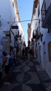 Op 19 september vertrek ik vanuit Valencia naar Denia. De Aja gaat weer zuidwaarts. Ik heb daar met Monique afgesproken. Op de heenreis heb ik op dit traject nog Gandia aangedaan, dat waren toen 2 redelijk korte tochten. Nu vaar ik het echter in een dag, zo’n 45 Nm. Zoals gewoonlijk is het ’s morgens motoren, omdat er weinig wind staat. In de loop van de dag trekt het wat aan en kan ik nog wat zeilen. Het gaat uiteindelijk redelijk waaien en ik maak me wat zorgen over het aanleggen. Ik ben van plan weer in de “goedkope” marina El Portet te gaan liggen. Het ligt ook nog dichter bij het stadje. Vlakbij de haven wil ik via de marifoon de haven oproepen, maar een oostbloks klinkende collega zeiler is me voor en roept op een beetje paniekerige toon dat hij een ligplaats zoekt omdat hij ivm de wind op een heel lastige plek ligt te wachten op antwoord. Uiteindelijk antwoordt een keurig Engels sprekende dame van marina de Denia. Zij geeft aan dat er in haar haven plaats is. Ook ik probeer een paar keer El Portet op te roepen, maar zonder succes. Dus toch maar Marina de Denia opgeroepen, en ja ik kan komen. Ik word geholpen met aanleggen. Een prachtige marina. Ik lig er eigenlijk prima, weliswaar wat duurder, maar alla. De was- en douchegelegenheden zijn superluxe. Je hebt er keuze uit wel 50 badkamers. Qua omvang zo groot, dat die van mij thuis er wel 2x in past. Er is nog net geen ligbad. Lekker zo luxe. De volgende dag schrob ik de boot en maak van binnen ook schoon schip. Beetje een ritueel voor als er (hoog) bezoek komt. Monique heeft vrijdag een vrij late vlucht vanuit Rotterdam naar Alicante. Helaas heeft haar vliegtuig vertraging vanwege de harde wind in noord west Nederland. waardoor ze de rechtstreeks geboekte bus naar Denia mist. Vanaf het vliegveld kan ze nog met de bus naar Benidorm en vandaar uit met een boemel naar Altea. Daar stokt het en zal ze verder moeten met de taxi. Er is feest Altea, straten zijn afgesloten en een taxi is niet te bekennen. Na allerlei omzwervingen vindt ze toch een taxi en legt de laatste 50km af naar Denia. We spreken af dat ik bij de poort zal wachten. Uiteindelijk staan we allebij bij een verschillende slagboom te wachten. Maar met een fotootje van Google maps vinden we elkaar. Om 23.20 uur kunnen we net voor het sluiten van de keuken nog wat eten in een restaurant aan de haven. We gaan op tijd te kooi want de volgende dag gaan we naar Ibiza, Puerto de San Antonio, dat is ca 57 Nm, dus wel zo’n 11 uur varen.
