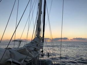 Vrijdagmorgen de 28e staan we weer vroeg op en vertrekken naar Mallorca, de haven van Andraitx. Weer ruim 50 Nm, dus we vertrekken met de opkomende zon in oostelijke richting. Aanvankelijk weer op de motor maar verder op dag kunnen we, aan de wind, zeilen. Die wordt richting kust van Mallorca wat steviger, we reven door de genua wat in te rollen. We driften af van de uitgestippelde route en vragen ons af, als we kust naderen, waar de haveningang ligt. Pas als we in de buurt zijn, blijkt dat je om de hoek van een rots moet en zo de baai van Puerto de Andraitx in te varen.