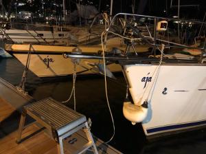 Het is een prachtige idyllische baai. We gaan weer in een ports IB haven liggen. We hebben alvast voor 4 dagen gereserveerd. Tot onze verbazing, en ook wel een beetje tot onze verbijstering, liggen we naast nog een Aja. Ik had gedacht dat ik de enige Aja zeilboot ter wereld had… De buren zijn Engelsen en volgens mij zijn zij ook wel een geschrokken.